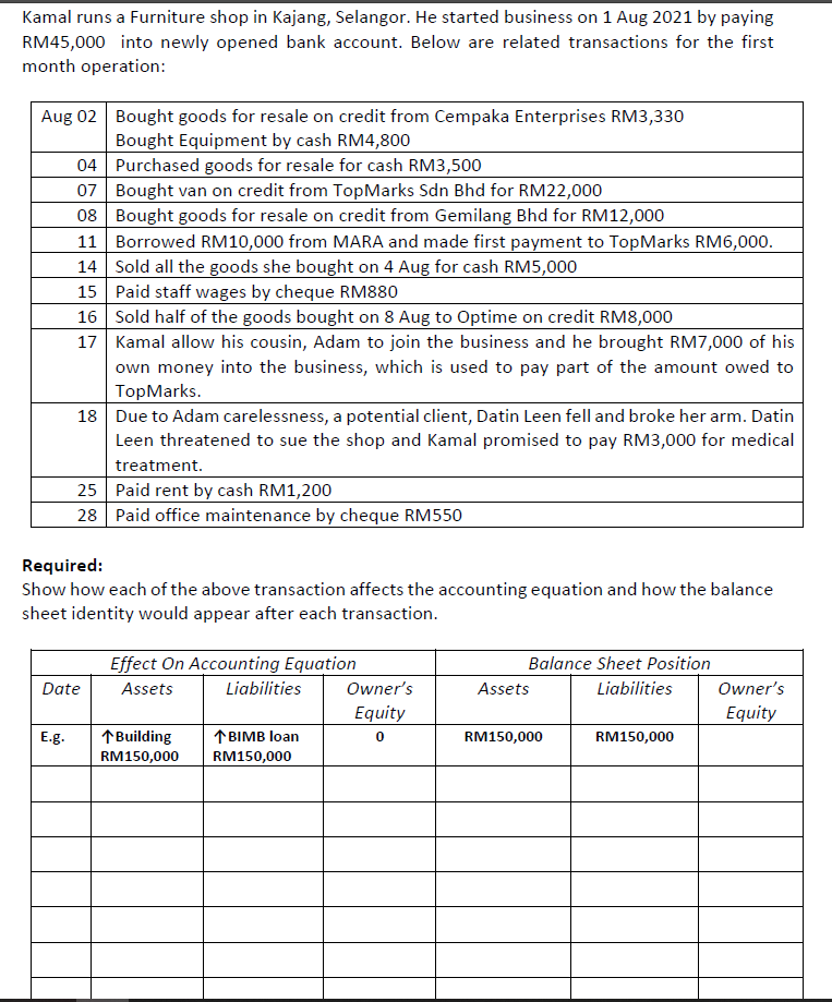 Solved Kamal Runs A Furniture Shop In Kajang Selangor He Chegg Com